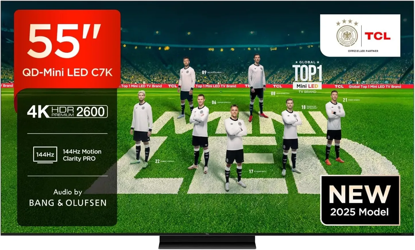 Le TCL 55C7K combine QD-Mini LED, QLED, 4K HDR Premium 2600, 144Hz Motion Clarity Pro, pour des contrastes puissants, une qualité d'image HDR nette et colorée. Avec Game Master, HDMI 2.1, ALLM, 144Hz VRR, FreeSync Premium Pro, TCL Game Bar, 240Hz Game Accelerator et tous les formats HDR pris en charge (y compris HDR10+, Dolby Vision, Dolby Vision IQ), ce mini téléviseur LED TCL QD est le meilleur compagnon pour profiter de tous les films HDR, streaming, sports et jeux. Le TCL 55C7K dispose également du système de télévision intelligent le plus avancé de tous les temps : Google TV avec Google Assistant intégré. Accès facile au contenu que vous aimez grâce à la commande vocale mains libres intégrée: vous pouvez parler directement avec votre téléviseur. 55C7K offre une expérience audio immersive de Bang & Olufsen. Elle offre un son Dolby ATMOS et DTS:X captivant pour vos films, votre musique et vos événements de jeu.